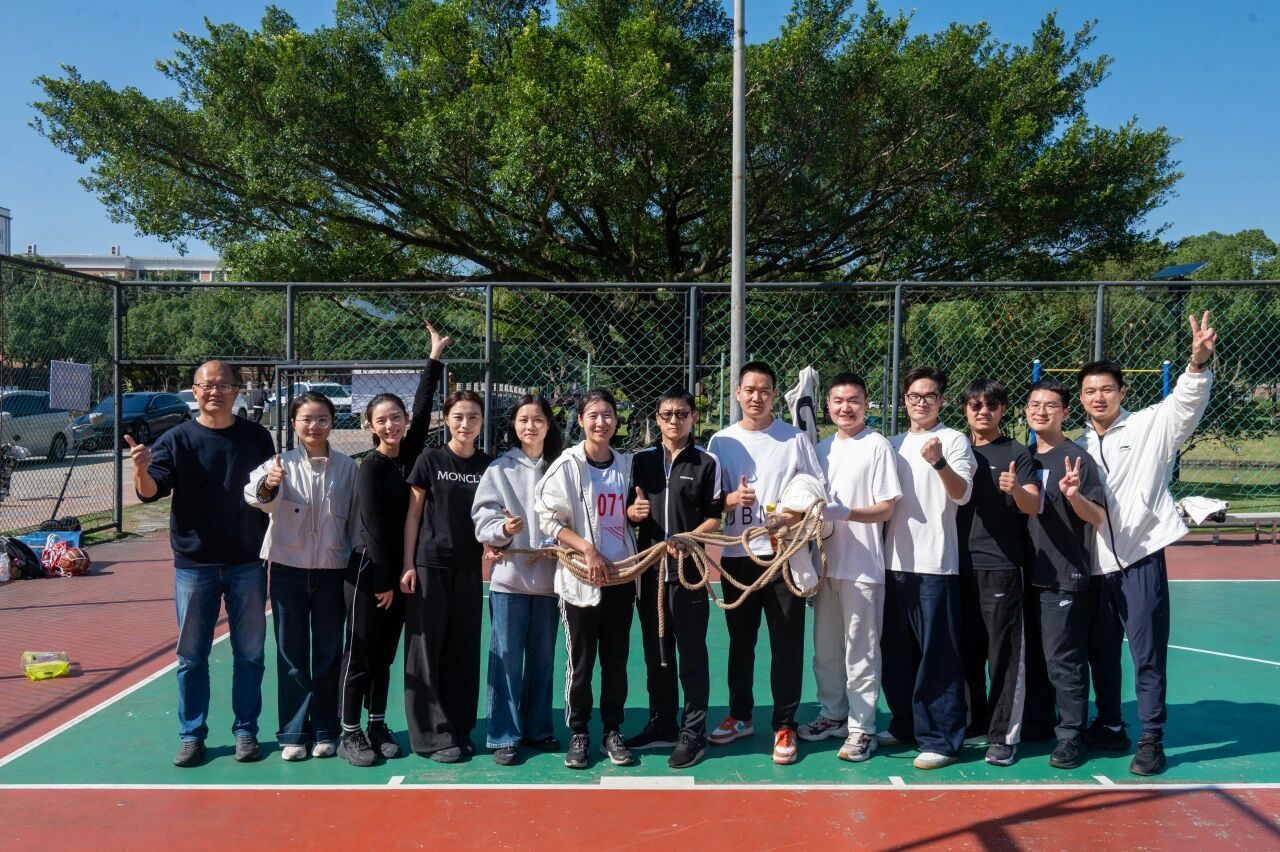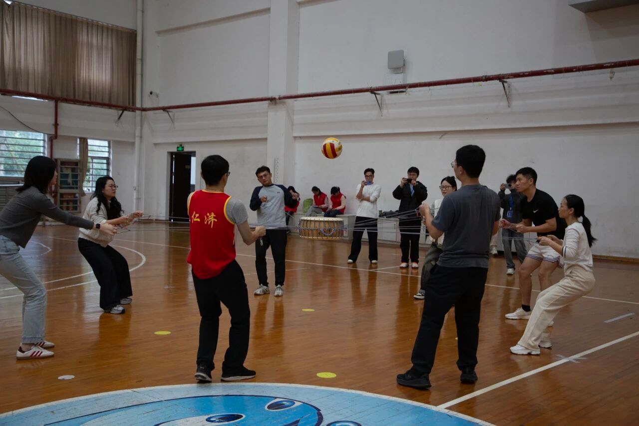 教工组的比赛同样精彩纷呈、竞争激烈!老师们在赛场上挥洒汗水、奋勇争先,那份全力以赴的拼搏精神,丝毫不输青年学子,尽显昂扬向上的热情与活力。篮球运球上篮项目中,他们动作敏捷、配合默契,凭借稳定发挥成功突围,斩获第一名;同心击鼓赛场上更是高潮迭起,以196个的高分成绩强势刷新纪录,赢得全场喝彩。此外,我院教职工在其余各项赛事中取得了令人瞩目的优异成绩。