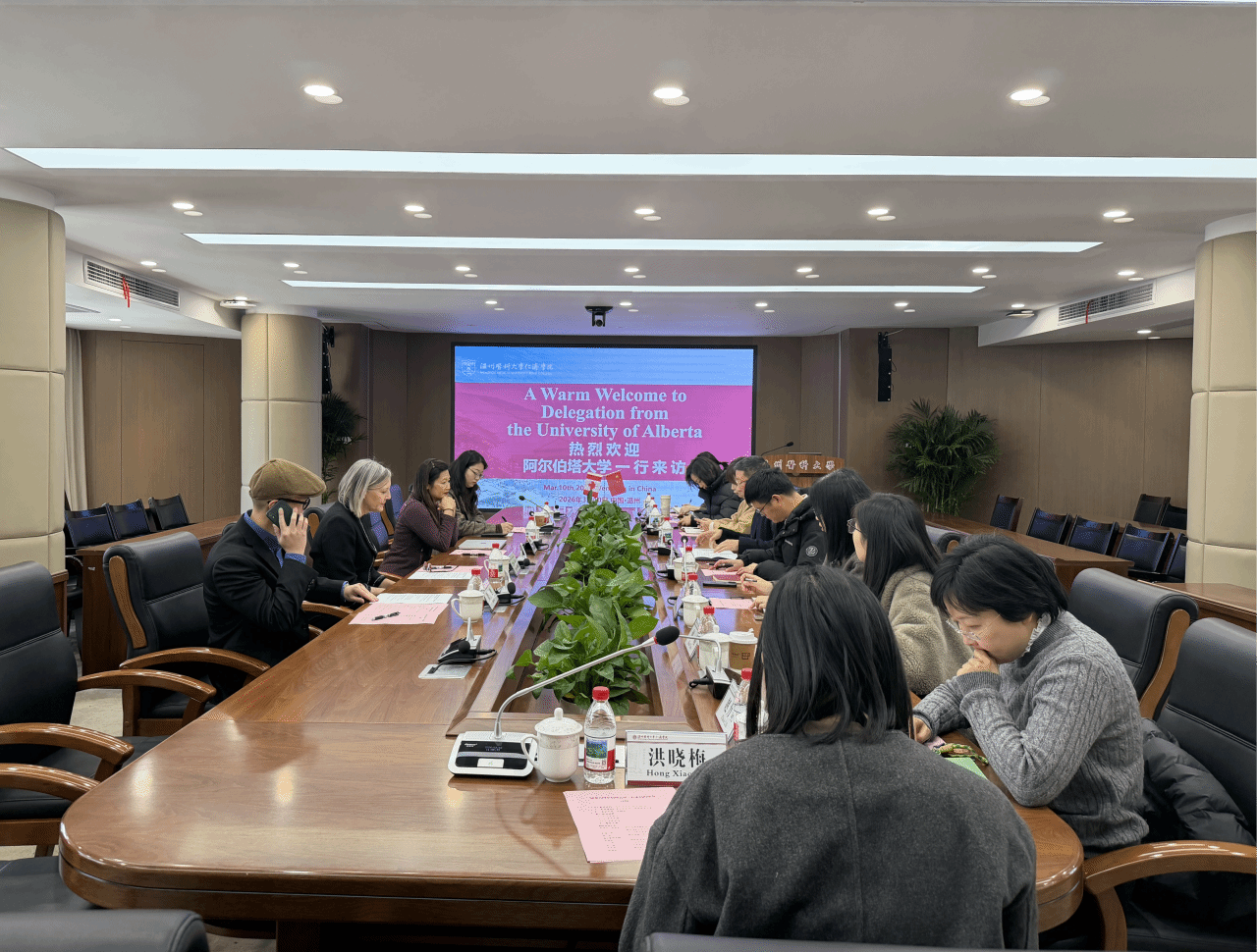 会上,梁韶晖院长对阿尔伯塔大学代表团的远道而来表示诚挚欢迎。他表示,自2025年双方开展两次全科医学专业合作洽谈以来,已搭建起良好的合作框架,此次洽谈是对前期共识的落地深化,更是双方携手推动全科医学教育发展的重要一步。