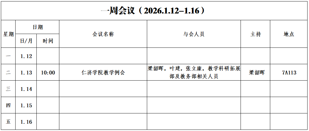 第十九周会议安排