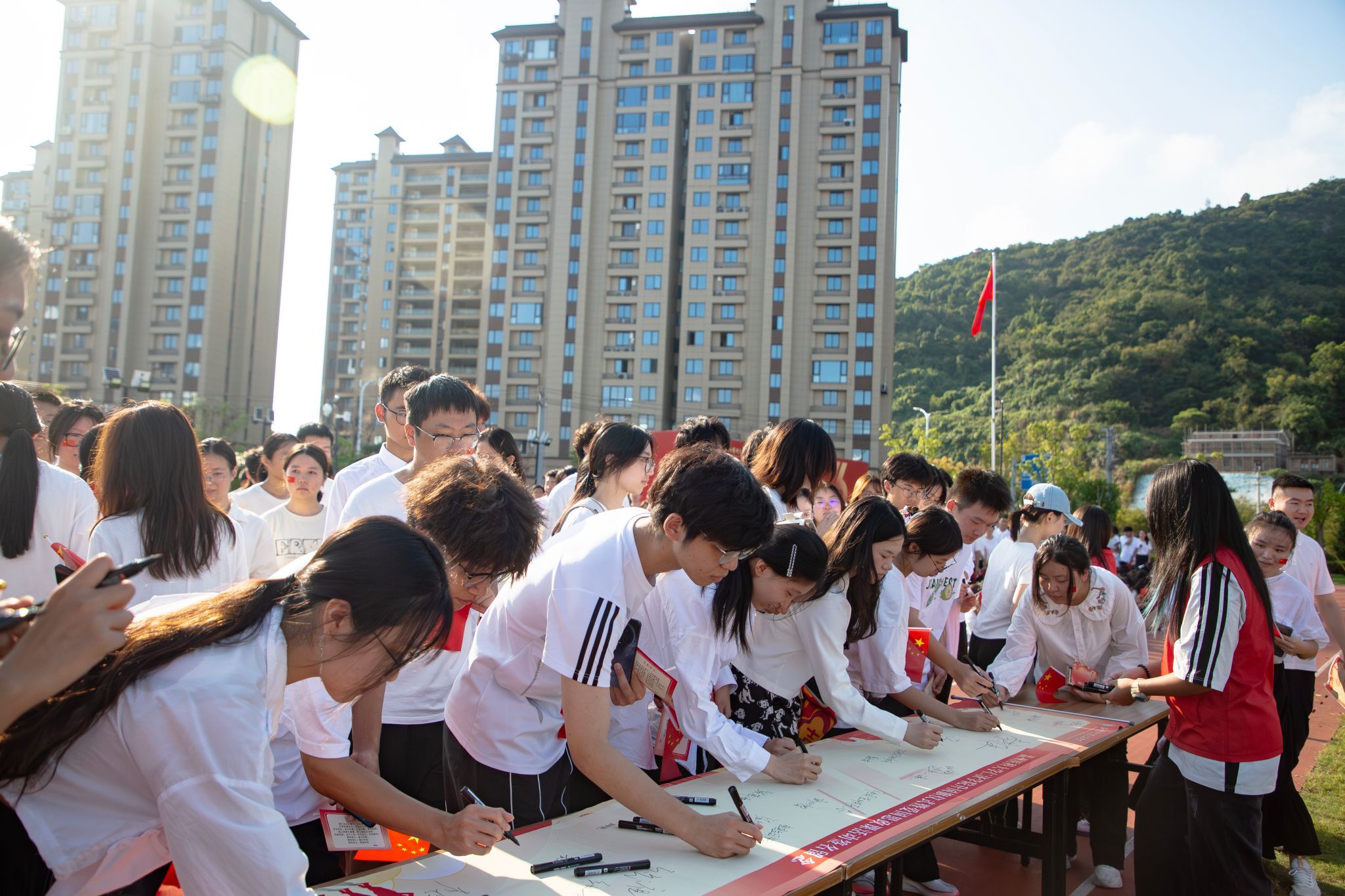 “我爱你中国,亲爱的母亲……”活动的尾声,全场师生挥动着手中的红旗,共同高唱《我爱你中国》。激昂深情的旋律响彻云霄,唱出了对祖国母亲的赤子之心和无限热爱。歌声落下,师生们在“祝福中华人民共和国成立76周年”的签名卷轴上郑重签下自己的名字,深情表达对祖国繁荣昌盛的美好祝愿。